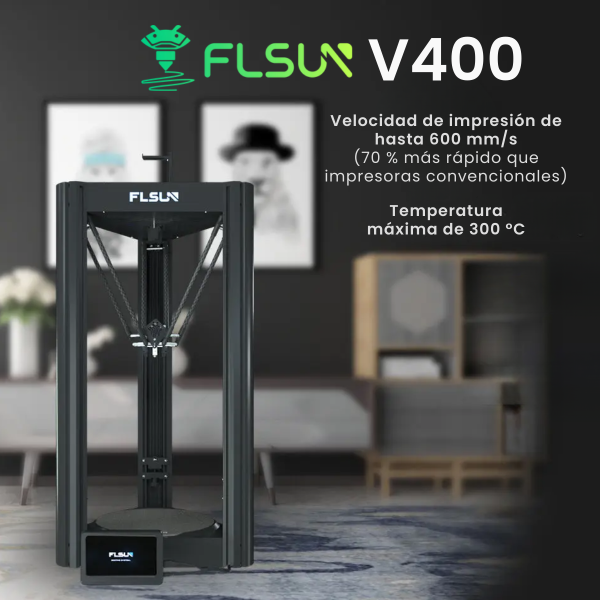 Flsun V400 es una impresora Delta 3D extremadamente fácil de usar. La impresora 3D cuenta con velocidades de impresión extremadamente altas de hasta 600 mm/s. Esto ahorra más del 70 % en comparación con los tiempos de impresión convencionales y crea impresiones 3D de alta calidad.